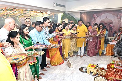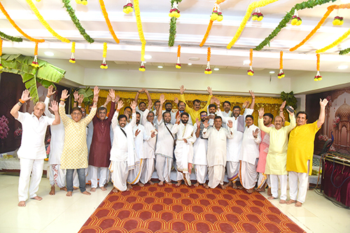 પૂજા અર્ચના અને મહાઆરતી થયા બાદ મહાજન તરફથી દરેક નિયાણીઓ અને બટુકોને મહાજન તરફથી સુંદર ઉપયોગી ગિફ્ટ-કીટ અપાઈ તેમજ પધારેલ જ્ઞાતિ શ્રેષ્ઠીઓ તરફથી વિવિધ ગિફ્ટો અને રોકડ રકમ પણ અપાઈ. ત્યાર બાદ સમૂહઆરતી જે હર્ષ મારાજના લયબદ્ધ સ્વરોમાં ધૂન સાથે થઈ. રાત્રે ૯.૩૦ વાગ્યે હાજર રહેલ ૧૨૦૦ કરતા વધારે લોકોએ રાત્રે પણ મહાપ્રસાદનો લાભ લઈને મહાજનના આવા ત્રિવેણી સંગમ રૂપી ત્રણ સમારોહની જ્ઞાતિગંગામાં ડૂબકી લગાવીને પોતે આવા કાર્યક્રમમાં હાજરી આપીને મહાજનના કર્મનિષ્ઠ અને સેવાભાવી સેવક પ્રમુખ અને તેની સંપૂર્ણ ટીમને ધન્યવાદ આપ્યા. સંપૂર્ણ ત્રિવેણી સંગમ કાર્યક્રમના પ્રમુખ સૂત્રધાર નીતિનભાઈ પાંધી, તેમજ સમસ્ત ટ્રસ્ટીગણ, ધાર્મિક સમિતિના કન્વીનરો, કારોબારી હોદ્દેદારો, સભ્યો તેમજ સ્વયંસેવકો હતા, જેમના વગર આ શક્ય ન થઈ શક્યું હોત. એવું સેવક-પ્રમુખ નિતીન પાંધીએ વિશેષમાં ઉમેર્યું હતું.